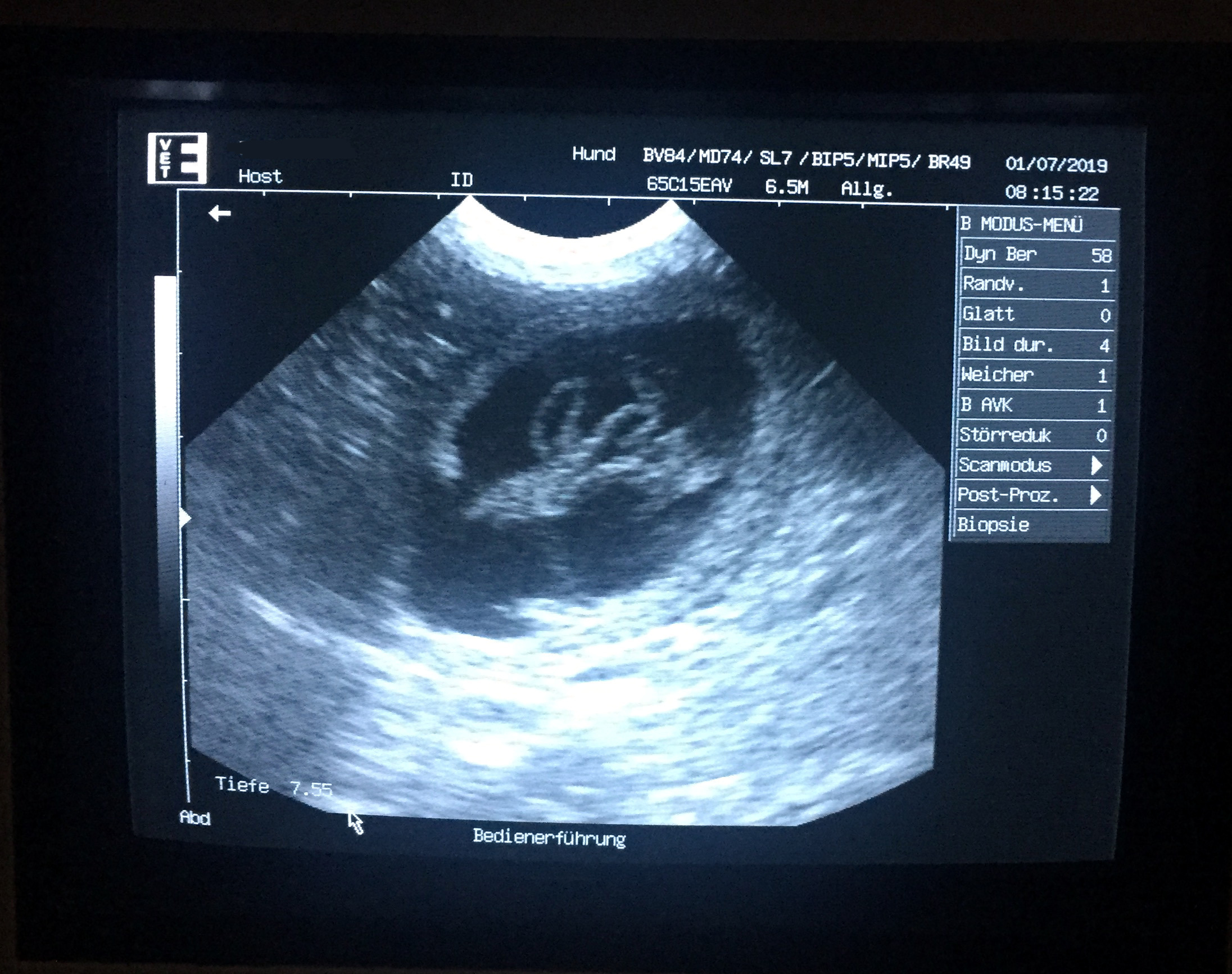 Nach der Bestätigung der Trächtigkeit durch eine Ultraschalluntersuchung erwarten wir auf dem Brunnenfeld um den 1.August herum unsere I-Wurfwelpen.