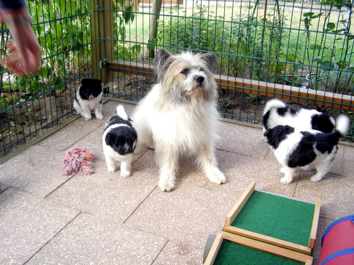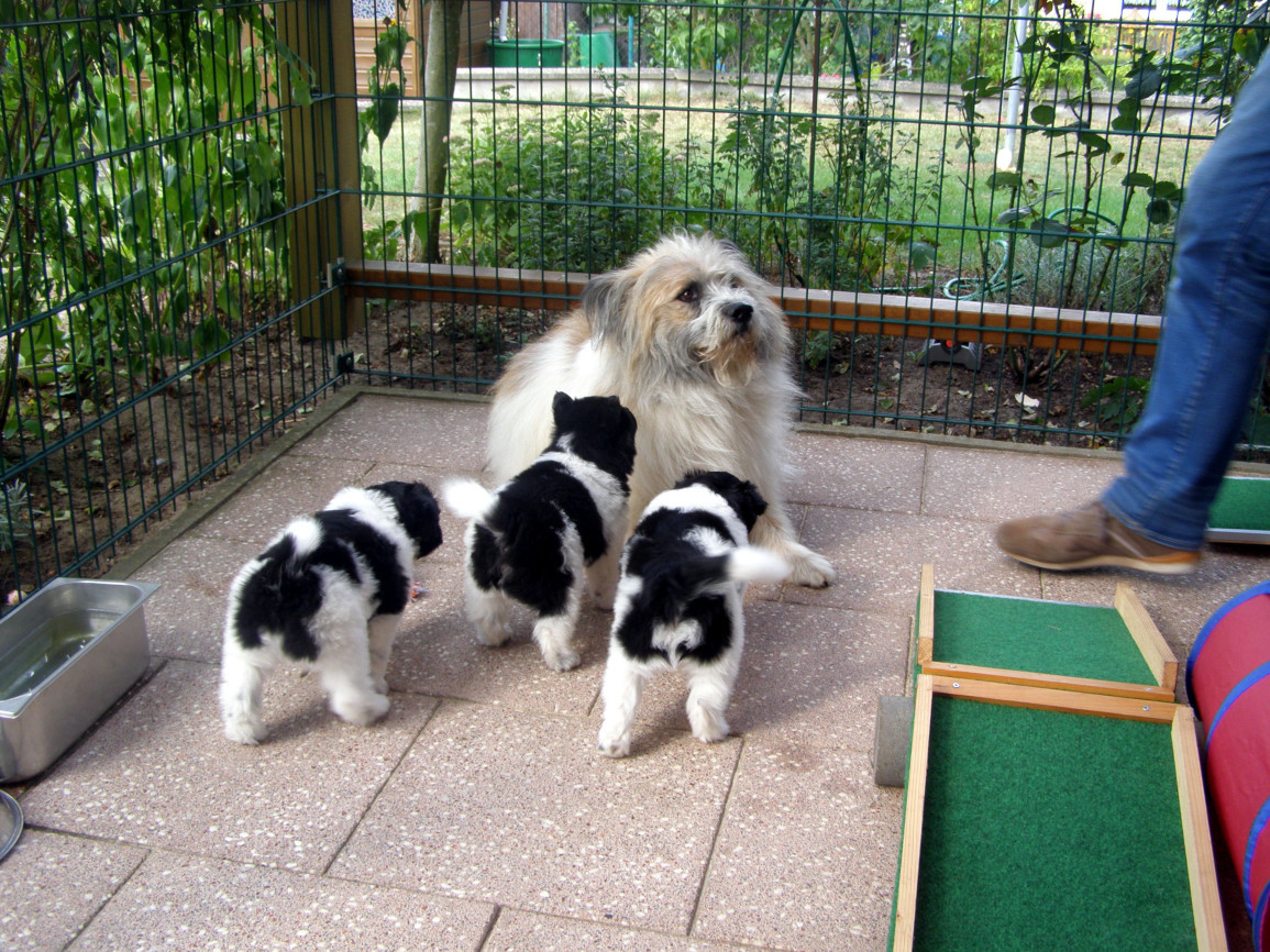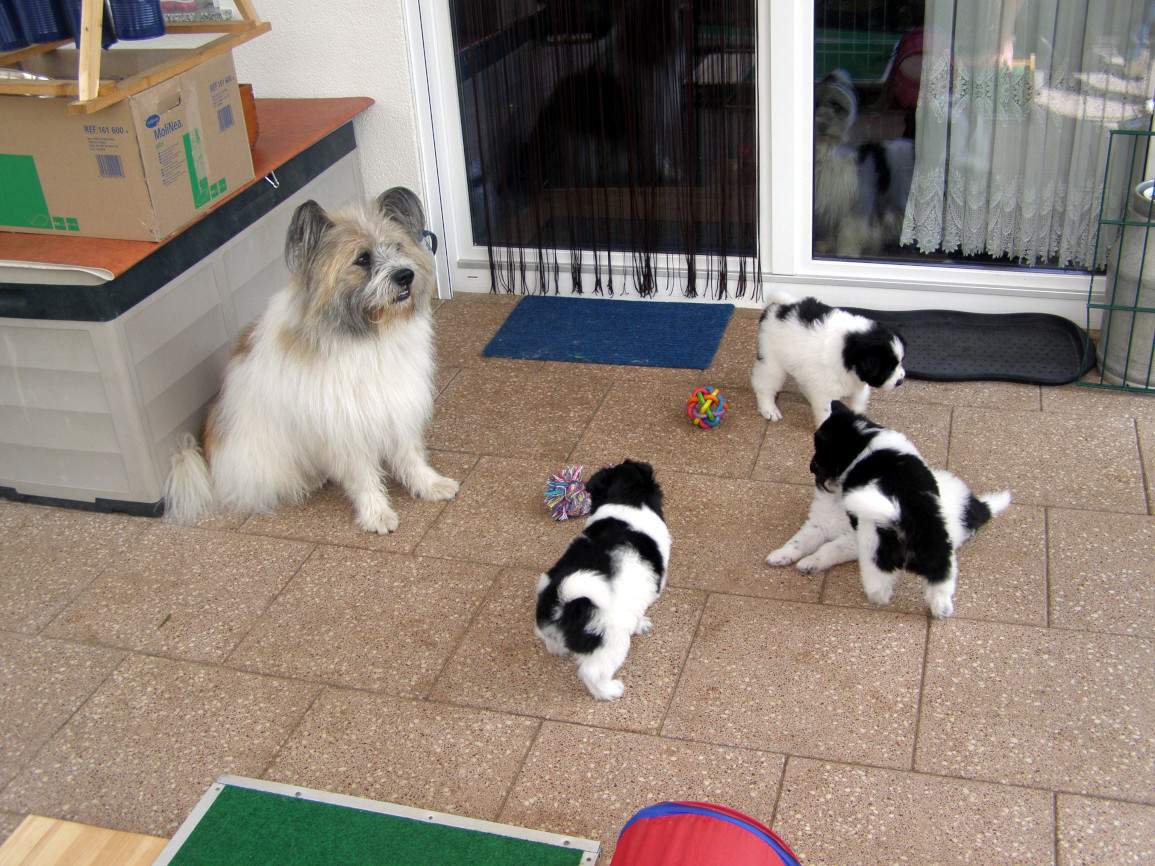 Allen Besuchern unseren herzlichsten Dank für das Interesse an unseren Welpen. Alle unsere I-chen haben das Wochenende gemeistert und schlafen nun fest um das Erlebte zu verarbeiten. Da kamen 3 große Hunde und der Papa war auch dabei. Von Angst aber keine Spur. Eher Interesse und dies natürlich mit einer Portion Vorsicht. Fremde Hände zum Streicheln waren auch noch da. Auch hier keine Berührungsängste. Na klar, gestreichelt zu werden ist für den Chebo super.